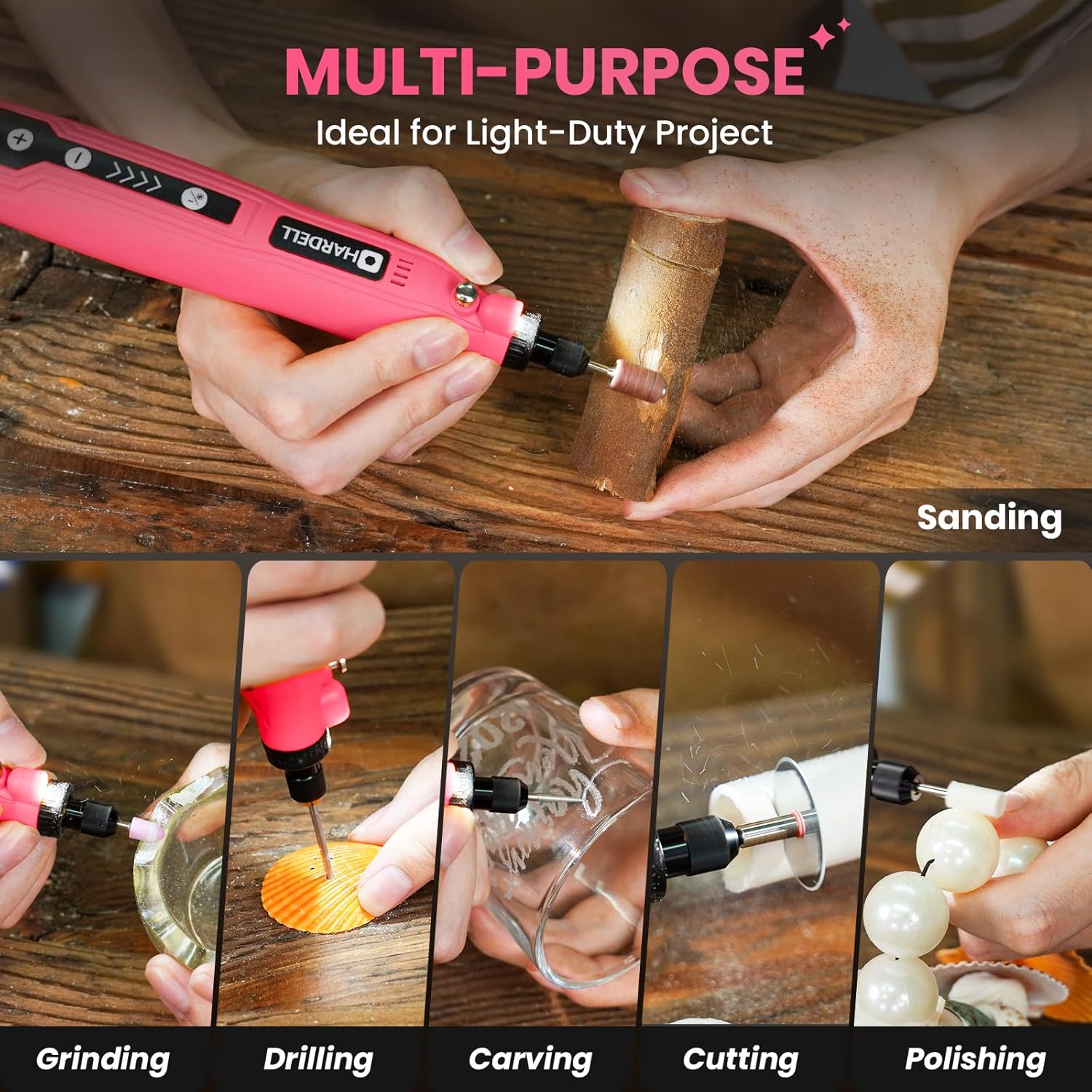 HARDELL Mini Cordless Rotary Tool, 5-Speed 3.7V rechargeable Rotary Tool Kit with 69 Accessories, USB Charging Multi-Purpose Power Tool for Sanding, Polishing, Drilling, Etching, Engraving, DIY Crafts
